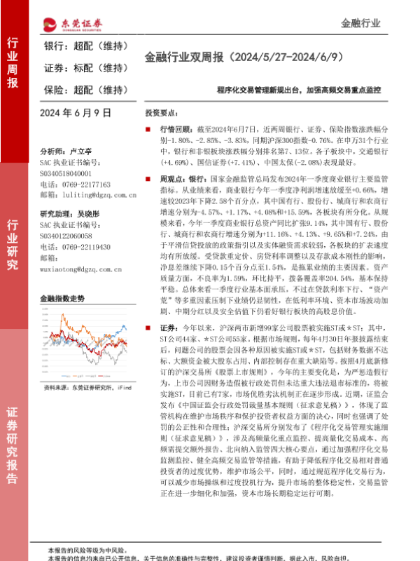 【东莞证券】【20240609】金融行业双周报:程序化交易管理新规出台,加强高频交易重点监控-14页 行业研究