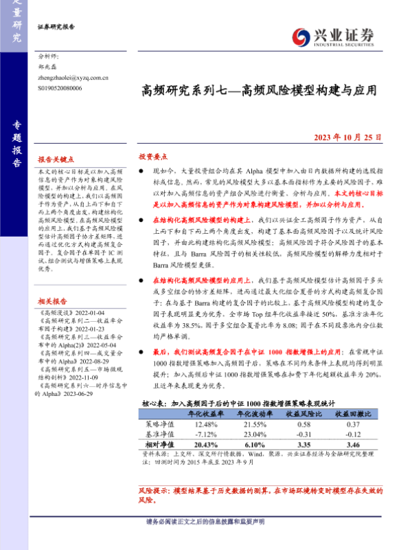 【兴业证券】【20231025】高频研究系列七—高频风险模型构建与应用-23页 行业研究