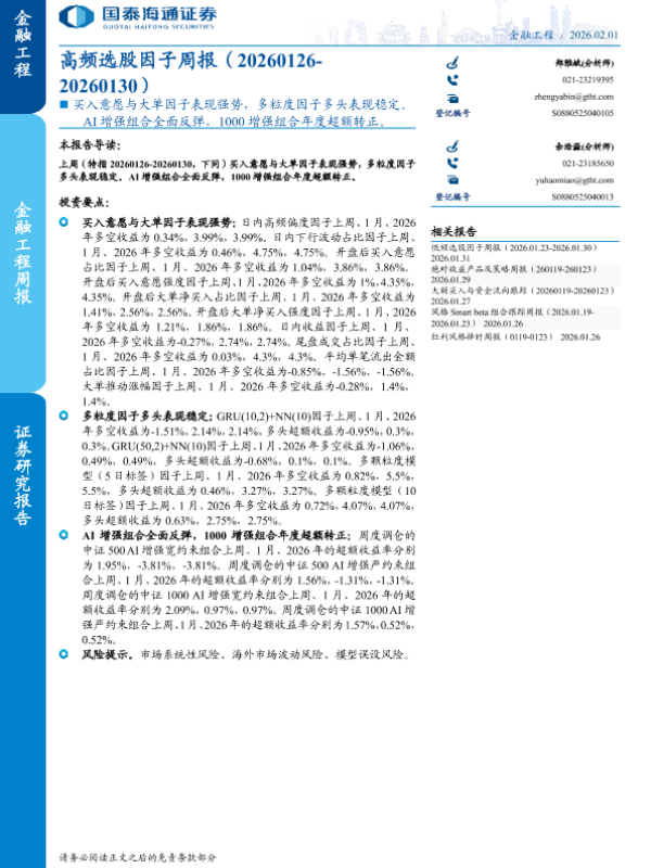 【国泰海通证券】【202601】高频选股因子周报(20260126-20260130)-21页 证券期货研究报告