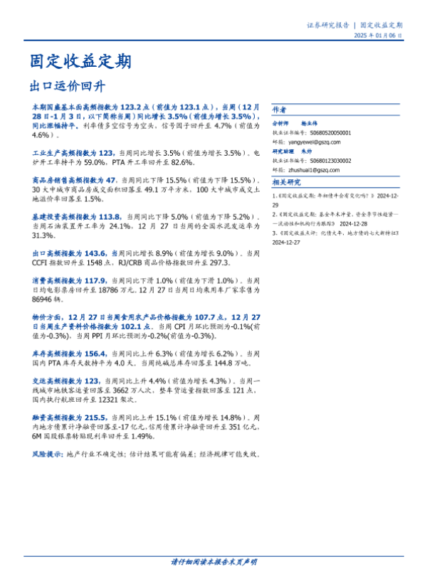 【国盛证券】【20250116】2025年01月16日更新-【国盛证券】固定收益定期:出口运价回升-20页 行业研究