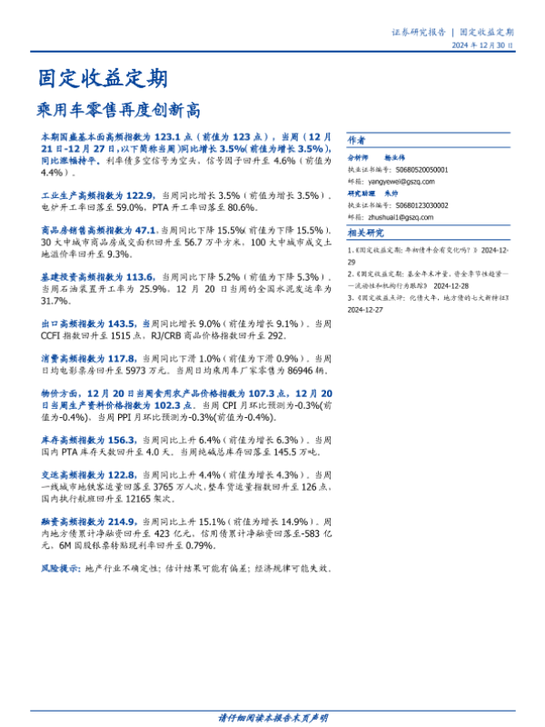 【国盛证券】【20241230】固定收益定期:乘用车零售再度创新高-20页 行业研究