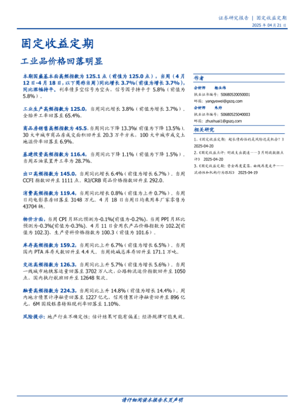 【国盛证券】【20250421】固定收益定期:工业品价格回落明显-20页 证券期货研究报告