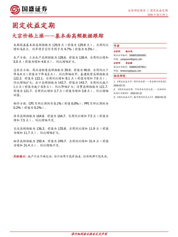 【国盛证券】【202602】固定收益定期大宗价格上涨——基本面高频数据跟踪-19页 证券期货研究报告