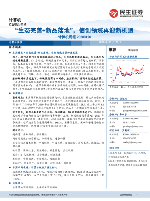 【民生证券】【20200120】“生态完善+新品落地”,信创领域再迎新机遇—计算机周报 20200120-16页 行业研究