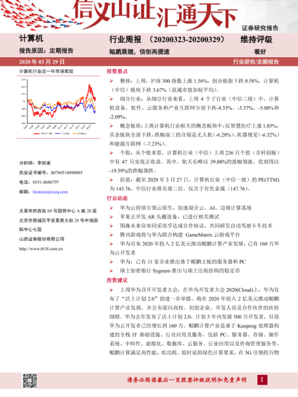 【山西证券】【20200329】20200329-山西证券-计算机行业周报:鲲鹏展翅,信创再提速-10页 行业研究
