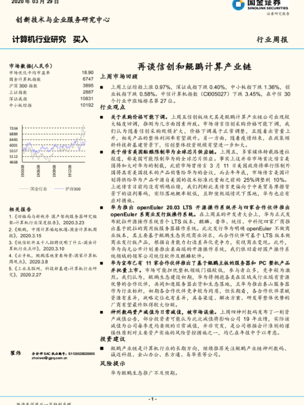 【国金证券】【20200329】20200329-国金证券-计算机行业研究:再谈信创和鲲鹏计算产业链-10页 行业研究
