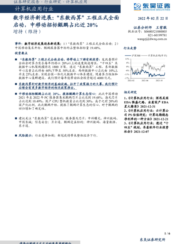 【东吴证券】【20220222】计算机应用行业数字经济新进展:“东数西算”工程正式全面启动,中移动招标鲲鹏占比近20%-6页 行业研究