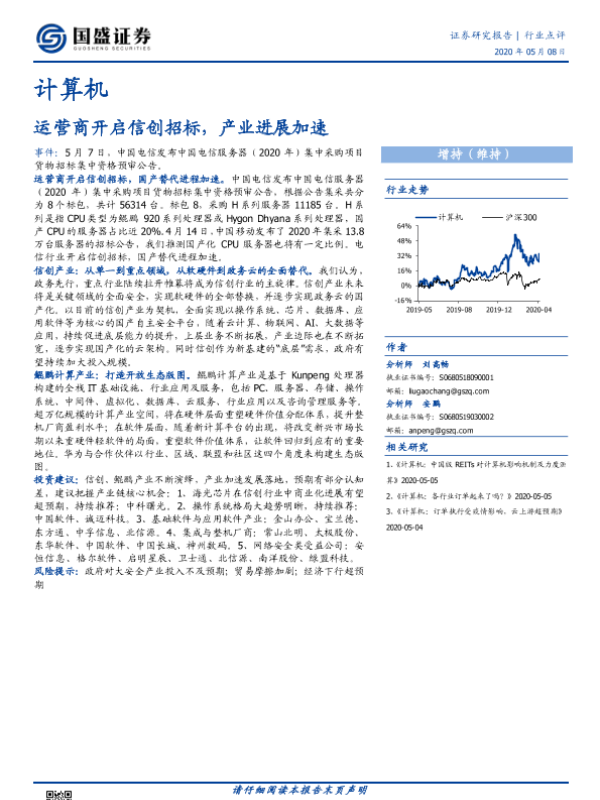 【国盛证券】【20200508】计算机:运营商开启信创招标,产业进展加速-2页 行业研究