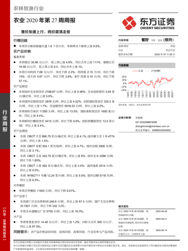 【东方证券】【20200705】农业2020年第27周周报:猪价加速上行,鸡价震荡走低-17页 行业研究