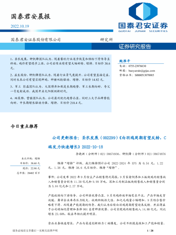 【国泰君安证券】【20221019】晨会 2022.10.19-28页 行业研究
