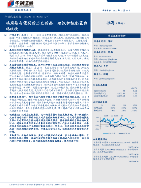 【华创证券】【20221227】华创农业周报:鸡周期有望刷新历史新高,建议积极配置白鸡板块-29页 行业研究