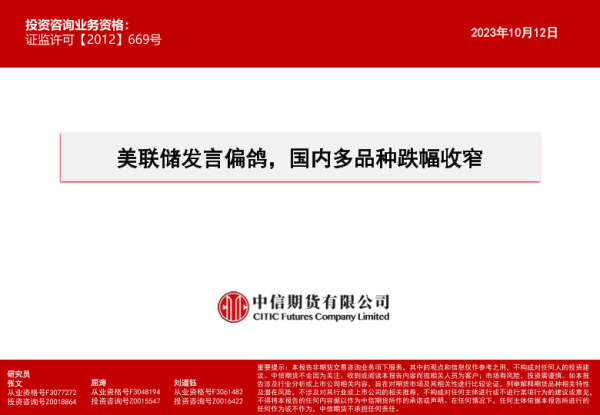 【中信期货】【20231012】美联储发言偏鸽,国内多品种跌幅收窄-15页 行业研究