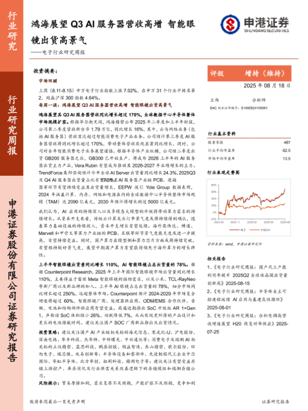 【申港证券】【20250818】鸿海-鸿海展望Q3 AI服务器营收高增,智能眼镜出货高景气-12页 证券期货研究报告
