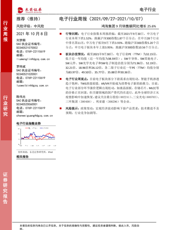 【东莞证券】【20211008】20211008-东莞证券-电子行业周报:鸿海集团9月销售额同比增长25.6%-14页 行业研究