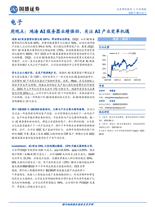 【国盛证券】【20250816】鸿海-AI服务器业绩强劲,关注AI产业变革机遇-15页 证券期货研究报告