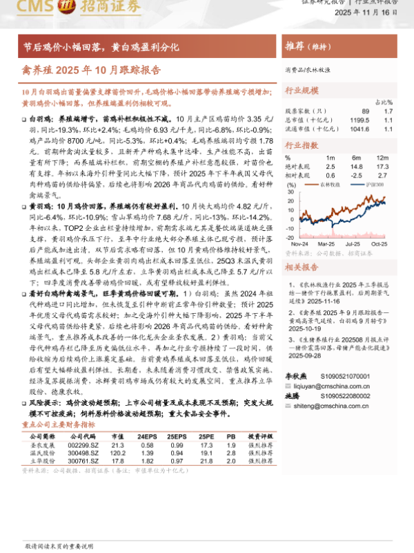 【海通证券】【202511】农林牧渔行业禽养殖2025年10月跟踪报告:节后鸡价小幅回落,黄白鸡盈利分化-7页 证券期货研究报告