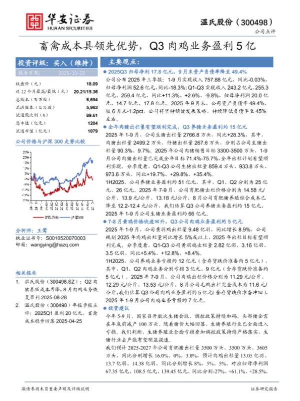 【华安证券】【202510】畜禽成本具领先优势,Q3肉鸡业务盈利5亿-4页 证券期货研究报告