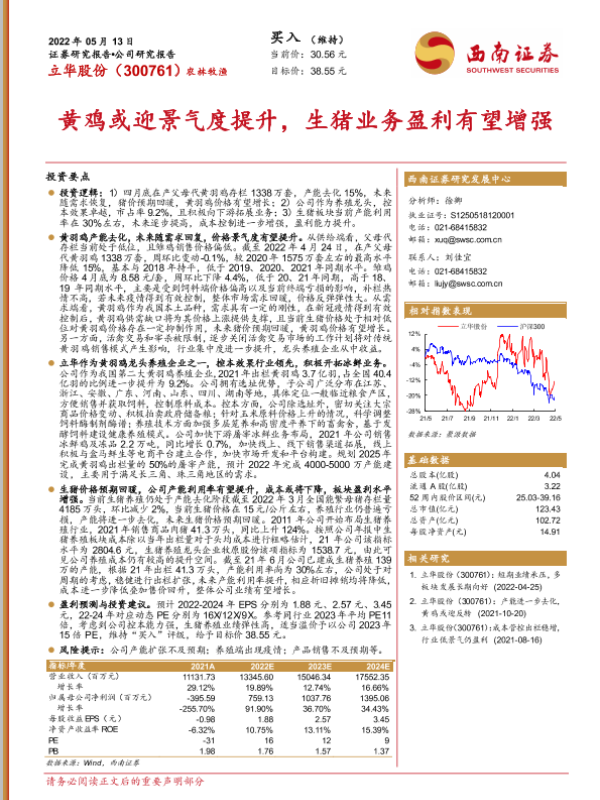 【西南证券】【20220513】黄鸡或迎景气度提升,生猪业务盈利有望增强-21页 行业研究