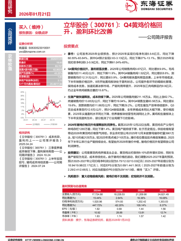 【东海证券】【202601】立华股份(300761):Q4黄鸡价格回升,盈利环比改善-3页 证券期货研究报告