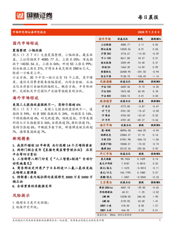 【国新证券】【202601】每日晨报-8页 证券期货研究报告