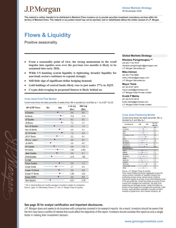 【J.P. Morgan Securities plc&J.P. Morgan India Private Limited】【202511】Global Markets Strategy Flows & Liquidity-34页 证券期货研究报告