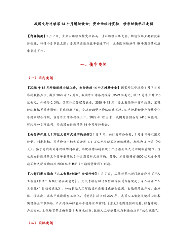 【东方金诚】【202501】我国央行连续第14个月增持黄金;资金面维持宽松_债市继续承压走弱-7页 证券期货研究报告