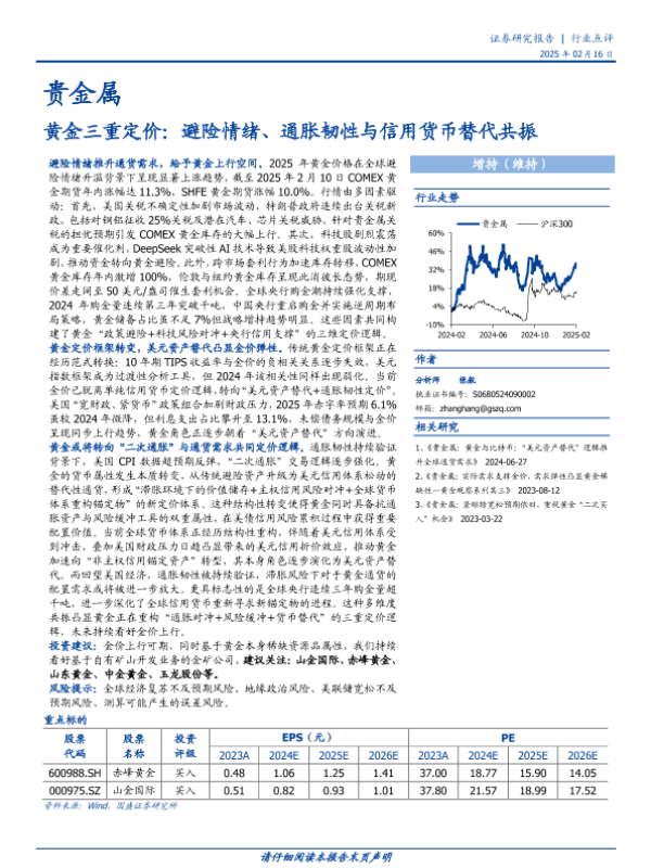 【国盛证券】【20250216】贵金属行业黄金三重定价:避险情绪、通胀韧性与信用货币替代共振-15页 行业研究