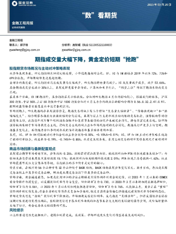 【国金证券】【20230326】“数”看期货:期指成交量大幅下降,黄金定价短期“抢跑”-15页 行业研究