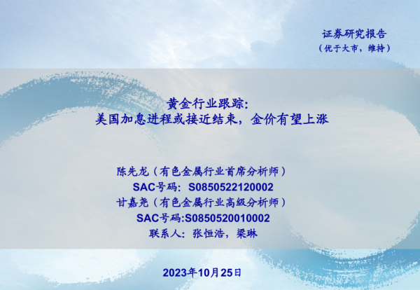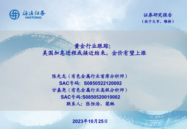 【海通证券】【20231025】黄金行业跟踪:美国加息进程或接近结束,金价有望上涨-27页 行业研究