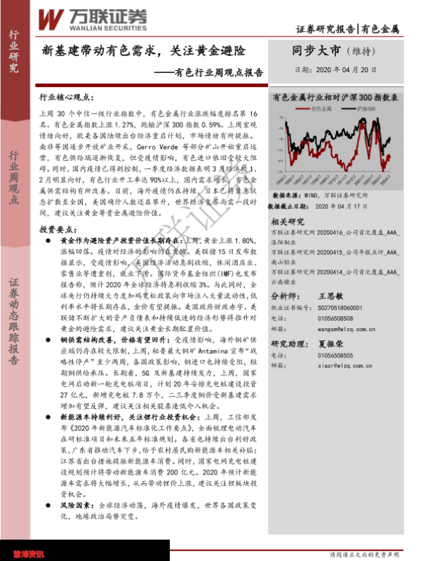【万联证券】【20200420】20200420-万联证券-有色行业周观点报告:新基建带动有色需求,关注黄金避险-14页 行业研究