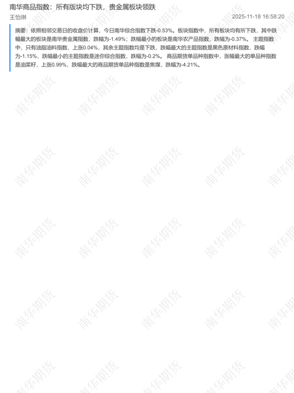 【南华期货】【202511】20251118-南华期货-南华商品指数_所有版块均下跌_贵金属板块领跌-2页 证券期货研究报告