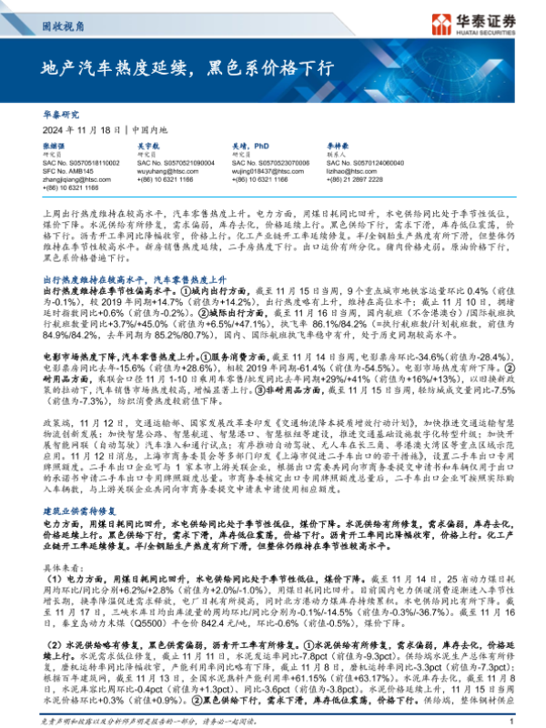 【华泰证券】【20241118】固收视角:地产汽车热度延续,黑色系价格下行-13页 行业研究