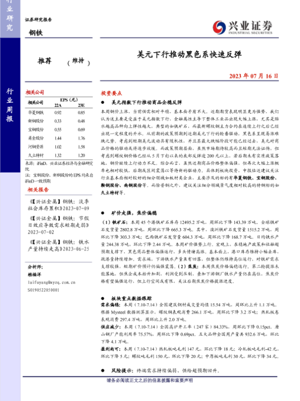【兴业证券】【20230716】20230716-兴业证券-钢铁行业周报:美元下行推动黑色系快速反弹-12页 行业研究