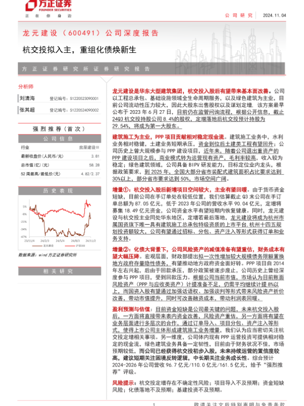 【方正证券】【20241104】龙元建设(600491)公司深度报告:杭交投拟入主,重组化债焕新生-31页 行业研究