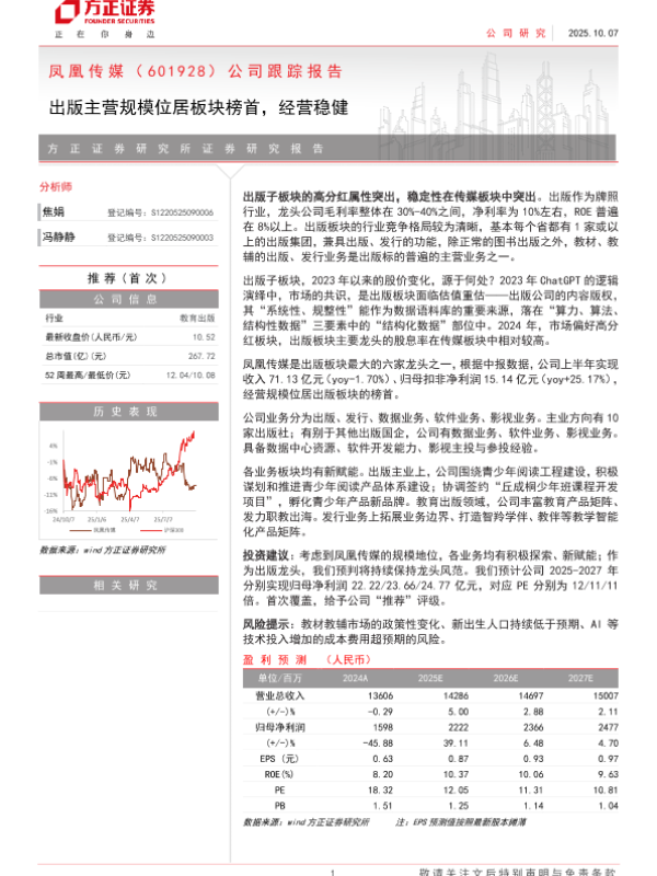 【方正证券】【202510】凤凰传媒(601928)公司跟踪报告:出版主营规模位居板块榜首,经营稳健-10页 公司研究