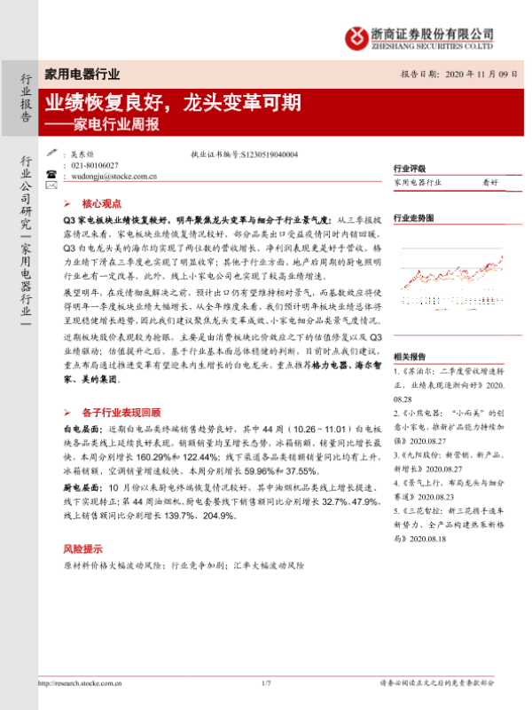 【浙商证券】【20201109】20201109-浙商证券-家电行业周报:业绩恢复良好,龙头变革可期-7页 行业研究