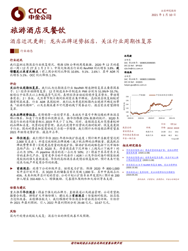【中金公司】【20210110】酒店近况更新:龙头品牌逆势拓店,关注行业周期性复苏-6页 行业研究