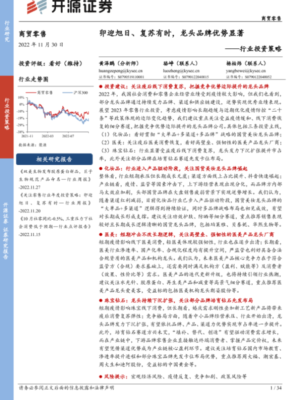 【开源证券】【20221130】商贸零售行业投资策略:卯迎旭日、复苏有时,龙头品牌优势显著-34页 行业研究