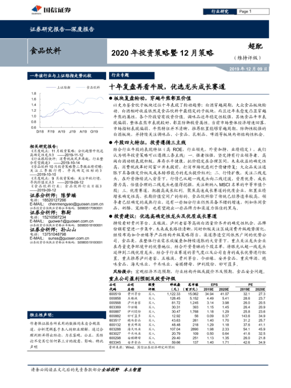 【国信证券】【20191209】20191209-国信证券-食品饮料2020年投资策略暨12月策略:十年复盘再看牛股,优选龙头成长赛道-45页 行业研究