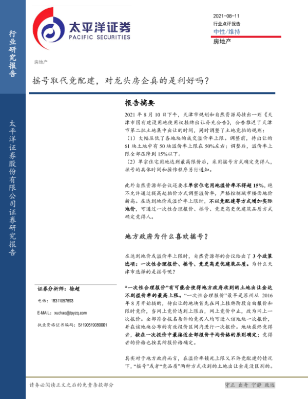 【太平洋证券】【20210811】摇号取代竞配建,对龙头房企真的是利好吗?-7页 行业研究
