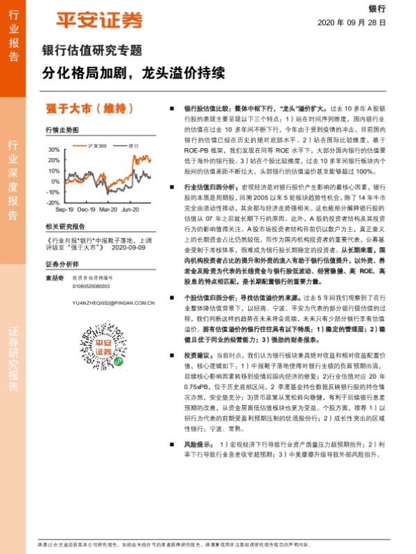 【平安证券】【20200928】银行估值研究专题:分化格局加剧,龙头溢价持续-20页 行业研究