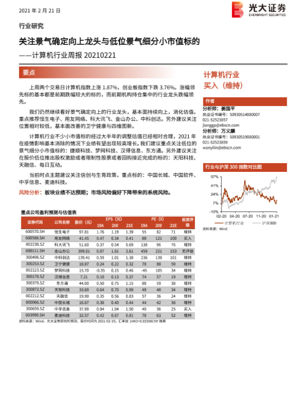 【光大证券】【20210221】计算机行业周报:关注景气确定向上龙头与低位景气细分小市值标的-11页 行业研究