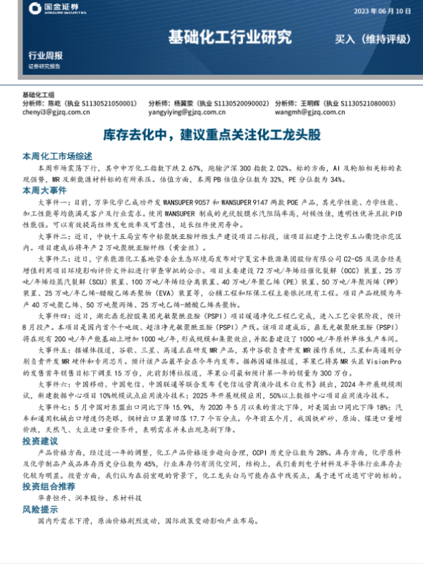 【国金证券】【20230610】20230610-国金证券-基础化工行业研究:库存去化中,建议重点关注化工龙头股-24页 行业研究