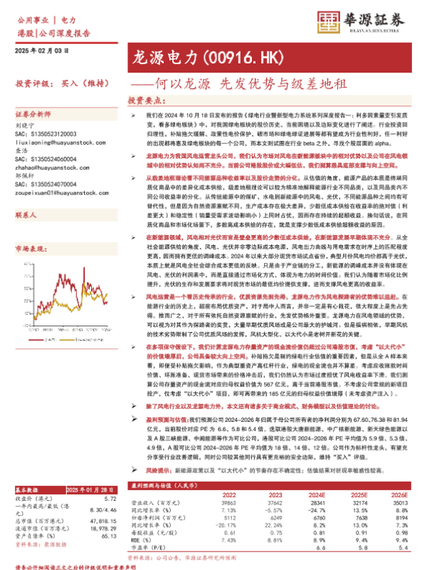 【华源证券】【20250203】龙源电力(00916.HK)何以龙源,先发优势与级差地租-29页 行业研究