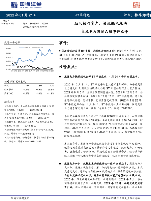 【国海证券】【20220121】龙源电力回归A股事件点评:注入核心资产,提振绿电板块-5页 行业研究