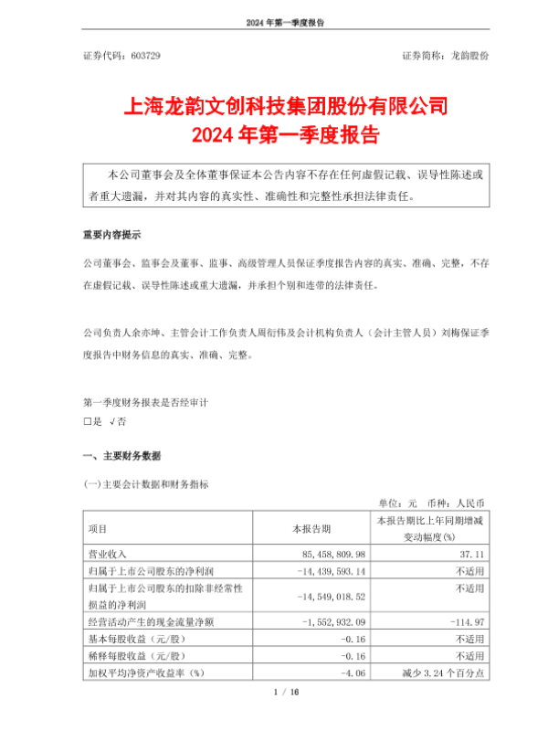 【上海龙韵文创科技集团股份有限公司】【20240101】上海龙韵文创科技集团股份有限公司2024年第一季度报告-16页 财报