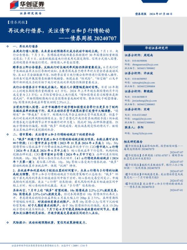 【华创证券】【20240708】债券:再议央行借券,关注债市α和β行情轮动-17页 行业研究