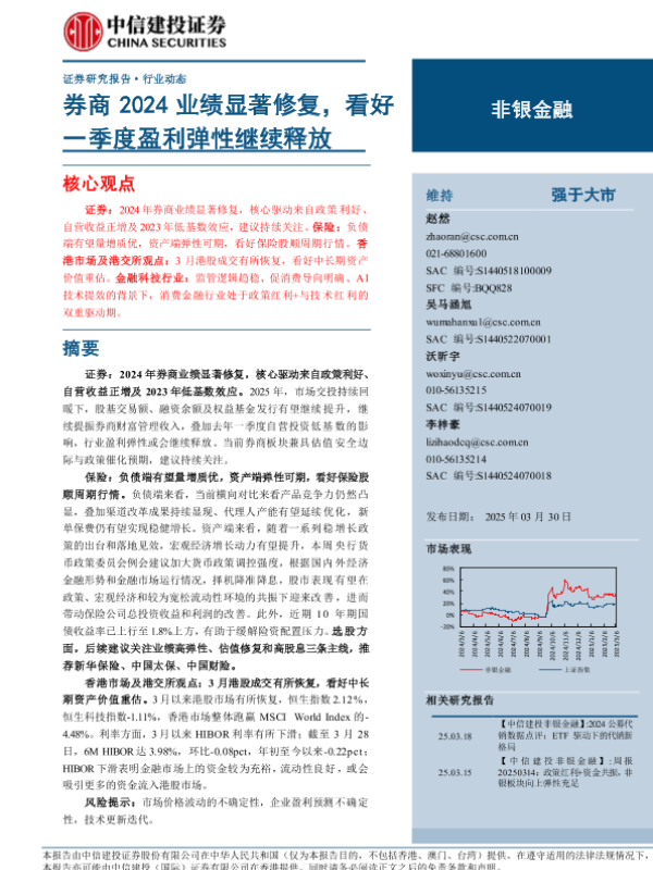 【中信建投证券】【20250330】非银金融行业动态:券商2024业绩显著修复,看好一季度盈利弹性继续释放-27页 行业研究