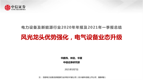 【中信证券】【20210507】电力设备及新能源行业2020年年报及2021年一季报总结:风光龙头优势强化,电气设备业态升级-91页 行业研究