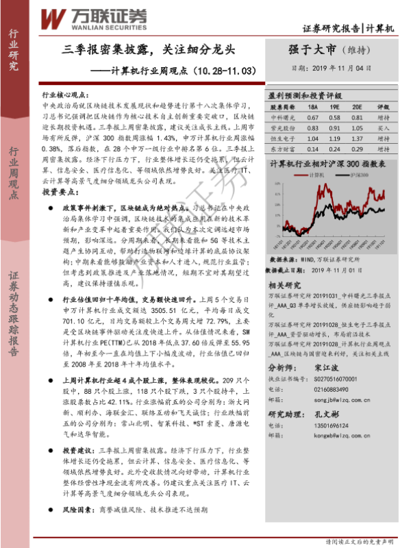 【万联证券】【20191104】20191104-万联证券-计算机行业周观点:三季报密集披露,关注细分龙头-9页 行业研究